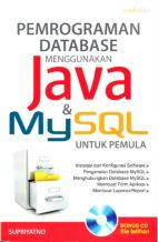 | 179 | ![]() | Katalog : Supriyanto Pemograman database menggunana java & mysql untuk pemula Penerbit Mediakita, Jakarta, 2010 Deskripsi : Mengenal dam mengisntal Java, mengenal java GUI, MySQL Database, pengolahan database MYSQL dengan MySQL Font, pemograman JDBC, membuat tempalte report dengan ireport, membuat tempalte lebih lanjut. Jumlah : 324 hal. - 41573 KB UNDUH |