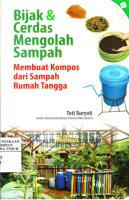 | 716 | ![]() | Katalog : Teti Suryati Bijak dan cerdas mengolah sampah Penerbit Agromedia Pustaka, Jakarta, 2009 Deskripsi : Mengolah sampah ala Teti Suryati, bijak mengolah sampah rumah tangga, pengolahan sampah organik rumah tangga menjadi kompos, cara lain membuat kompos, analisis usaha pembuatan komposer skala rumah tangga. Jumlah : 78 hal. - 6806 KB UNDUH |